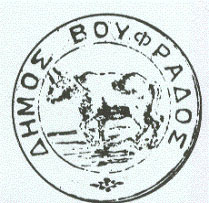 Όπως για την ονομασία, έτσι και για το έμβλημα επικράτησε η αντίληψη της πλήρους εξάλειψης όλων των στοιχείων που θύμιζαν οθωμανικό ζυγό. Με τη χάραξη των πρώτων σφραγίδων ασχολήθηκε ο Konrand Lange, και ο Έλληνας χαράκτης Κόντος, μετά τη βασιλική απόφαση της 15ης Αυγούστου 1835. Η σφραγίδα του δήμου Βουφράσου στην αρχή ήταν κυκλική χωρίς κανένα έμβλημα. Το δημοτικό συμβούλιο, το έτος 1882, πήρε απόφαση να τεθεί ως έμβλημα στη σφραγίδα του δήμου "τράγος" (Αρχαιολογική Εταιρεία, Αρχείο Παναγιώτη Ευστρατιάδη / αριθμός πρωτ. 2099/2 Ματρίου 1882). Η απόφαση αυτή δεν έγινε δεκτή, και κατόπιν γνωμοδότησης του αρχαιολόγου και υπεύθυνου για αυτά τα ζητήματα Π. Ευστρατιάδη, επελέγη ως έμβλημα ένα βόδι που βαδίζει, το οποίο επικυρώθηκε με το βασιλικό διάταγμα της 16ης Μαΐου 1882 (ΦΕΚ 89, σελίδα 472 κ.ε.).